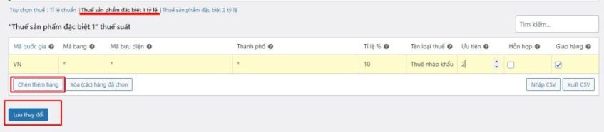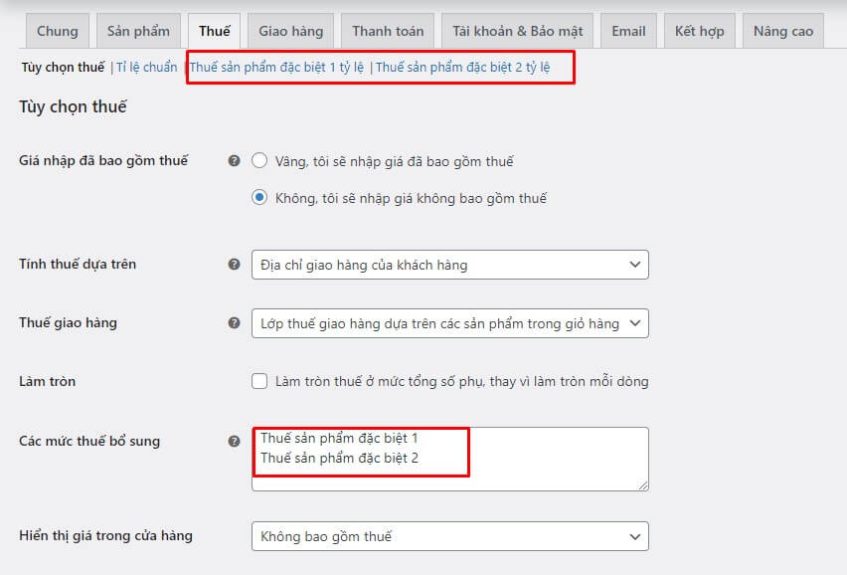 3. Cài đặt tỉ lệ thuế trong WooCommerce